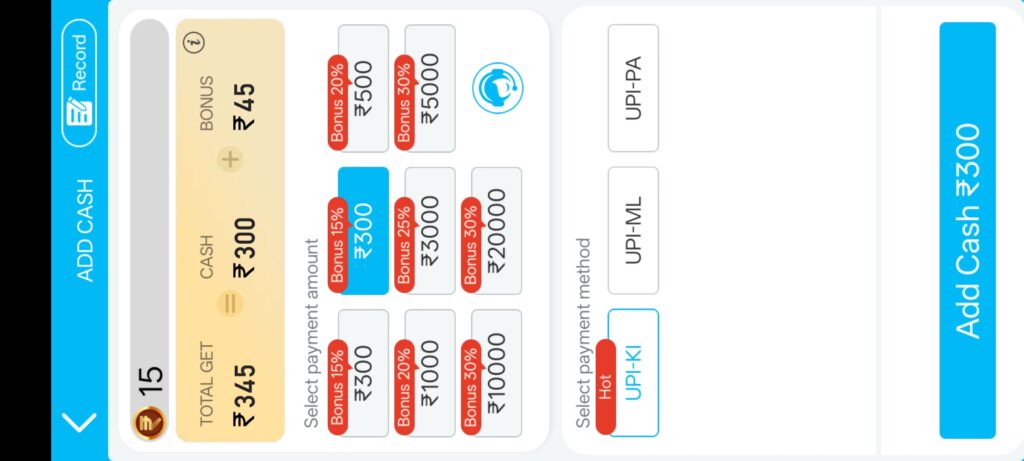 Friends, to add money you will find an option called “ADD CASH”, click it, select your amount to add, then deduct money from Google Pay or Phon Pay and finally transfer the amount deposited back into your account after it has been successfully deducted from these payment services. Friends that first time money adders receive 5-30% extra funds as well as 300-500 welcome bonuses as rewards!